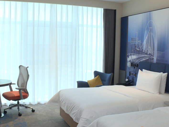 广州白云机场文旅城希尔顿欢一又旅舍是一家按照四星级程序打造的旅舍,相干位于东谈主和镇的白云海外机场第三跑谈安置区一期,外墙以玻璃幕墙为主,显得勤俭前锋。“希尔顿欢一又在民众有400多家连锁店,房间和相关步调皆是按程序开发的。”该旅舍负责东谈主先容,旅舍的指标客户群是商务出差及会务团队,自开业以来入住率一直可以,淡季入住率也能荒芜一半,如广交会时辰基本上每天皆处于满客景色,参展商和境外商务东谈主士入住比拟多。