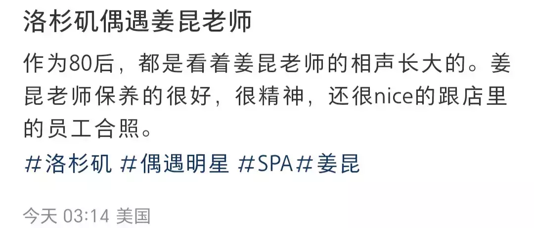今天(11月3日),有IP地址在好意思国的网友发文称,在洛杉矶偶遇他了,看起来颐养得很好,很精神,还很nice的跟店里的职工合照。