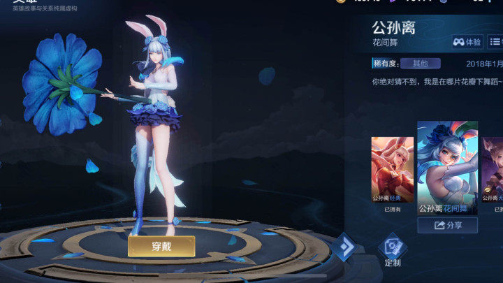 这款花间舞的海报盘算的很面子,展示模子更是荒谬精细,只看模子的话,致使还是达到了外传皮肤的圭表。