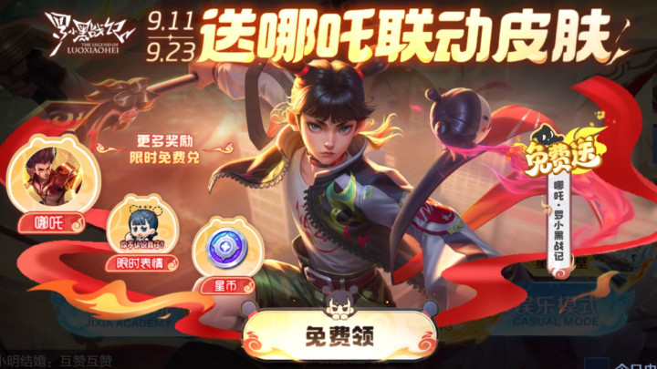 而且这款皮肤如故免费的,在11号到23号这段时辰,玩家唯有插足活动,就可以免费拿到哪吒的这款联动皮肤了。