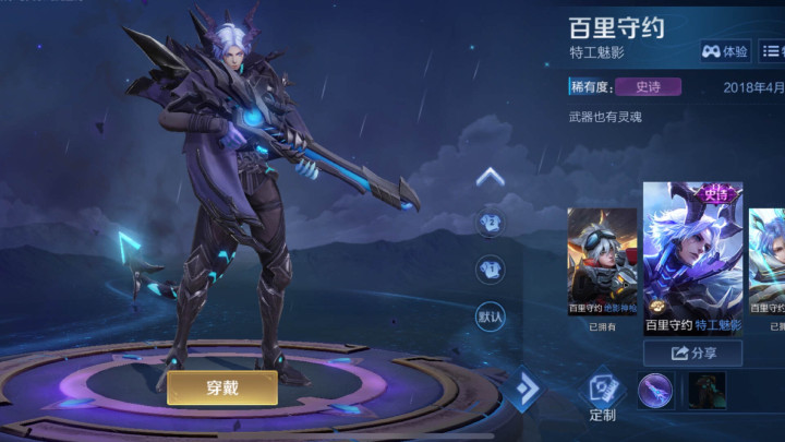 本人百里守约这个强人的皮肤就未几,这款特工魅影还是是性价比最高的存在了。