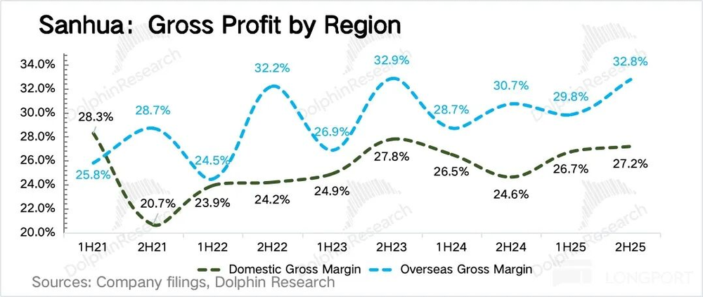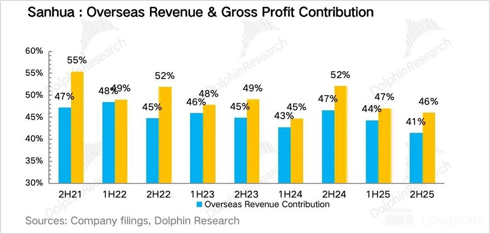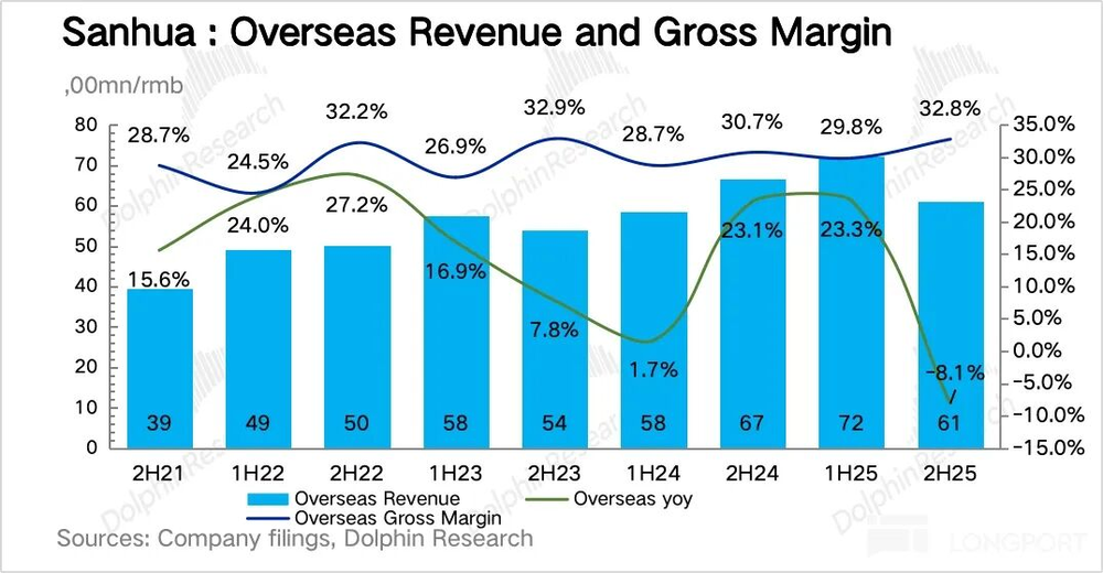 把柄公司财报暴露的信息,公司主要负责北好意思销售业务的三花国际有限公司(好意思国)2025年下半年销售收入17亿元,同比24年下半年和环比25年上半年皆下滑迥殊10亿元。