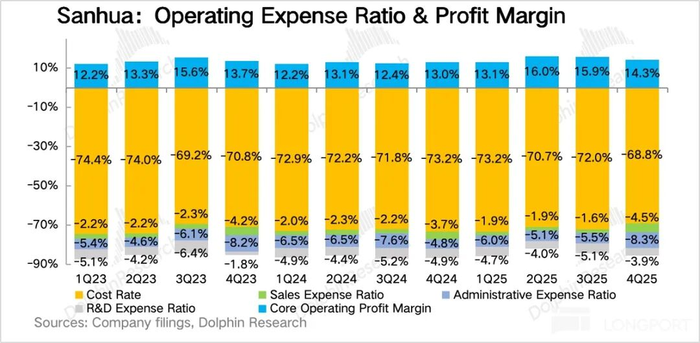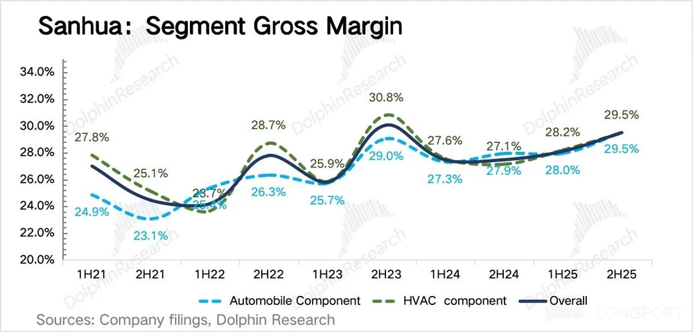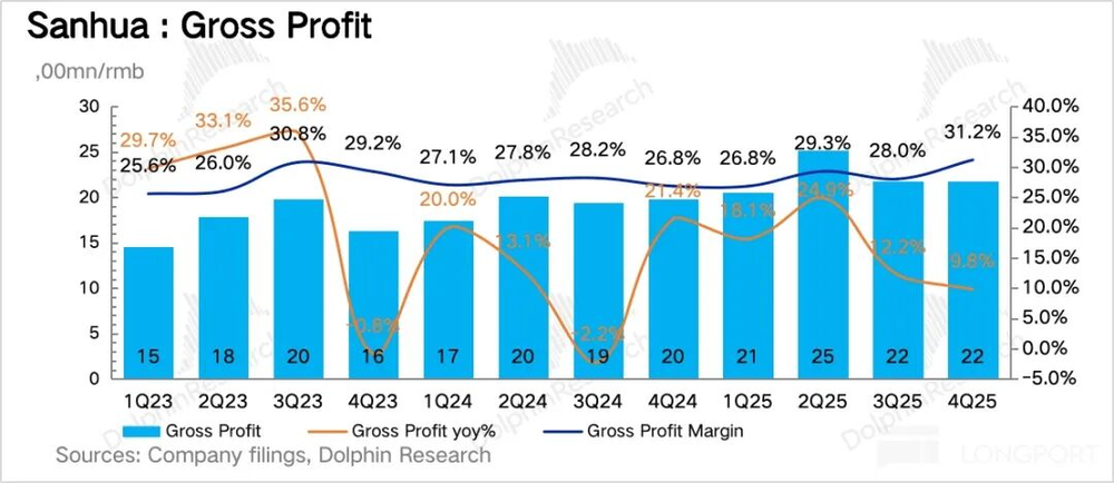 三花Q4单季毛利只消22亿,低于市集预期,主淌若受收入不足预期的影响,但毛利率31.2%却创了新高,同比拉高4pct,环比也擢升3pct。
