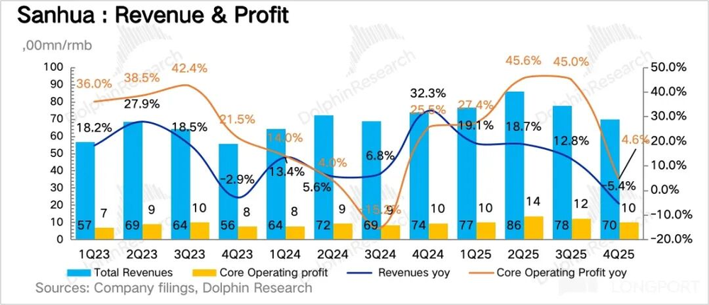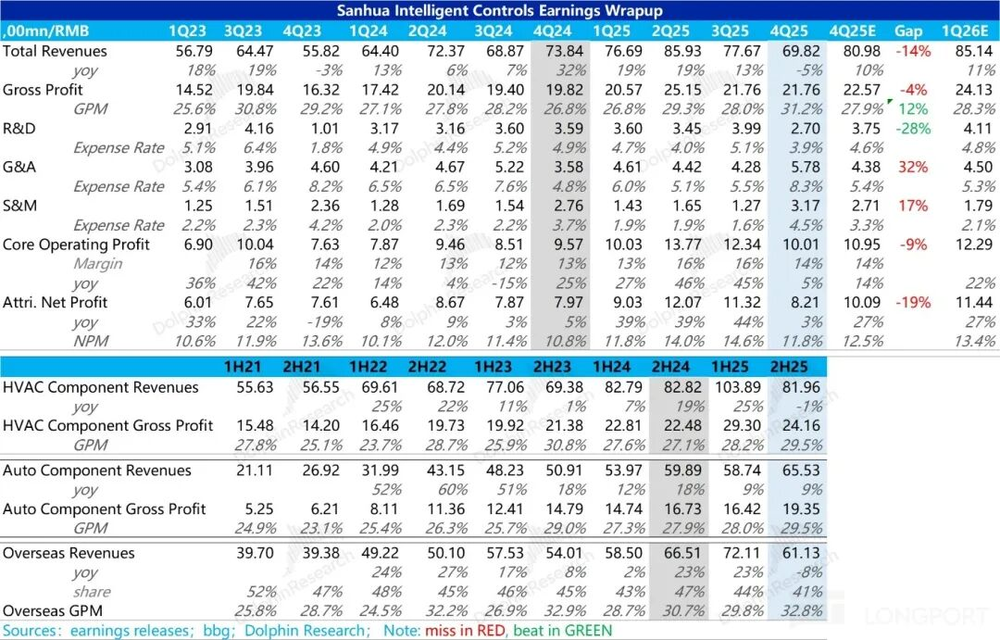 另外与此同期,在制冷板块的部分细分规模,三花发达可以:在商用规模,2025年浙江三花商用制冷有限公司营收30.6亿元,同比增长26%,净利润5.88亿元,同比增长38%;数据中心液冷规模,如上所述,营收14亿元,同比增长约40%。