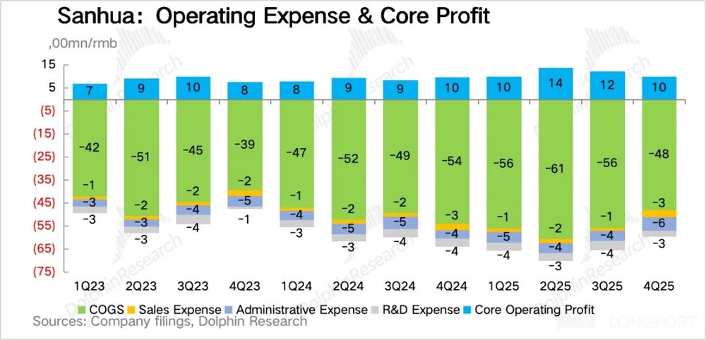 a.惩办用度:从东谈主员成立看,2025年行政、财务东谈主员等皆有所减少,但惩办用度上尤其是薪酬用度增长却比较赫然,导致惩办用度走高,尤其是四季度,预想应该是年底奖金的密集开销所致。