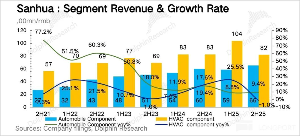 不外从同比增速上来看,三花汽车业务多元化历程其实可以:25年第一大客户的占比一经从24年的12.6%下降到接近11%。