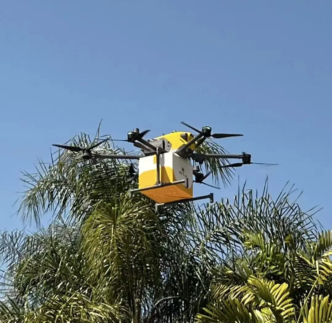 2025年5月,华裔城创意园搞周末夜市,三十台无东谈主机同期在空中盘旋,送烤生蚝、烤鱿鱼、烤韭菜。油汁被封在铝盒里,语焉省略。