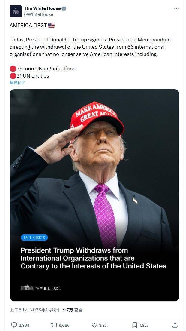 这次,特朗普一次性退出66个海外组织,可谓刷新了众东说念主对特朗普的默契。